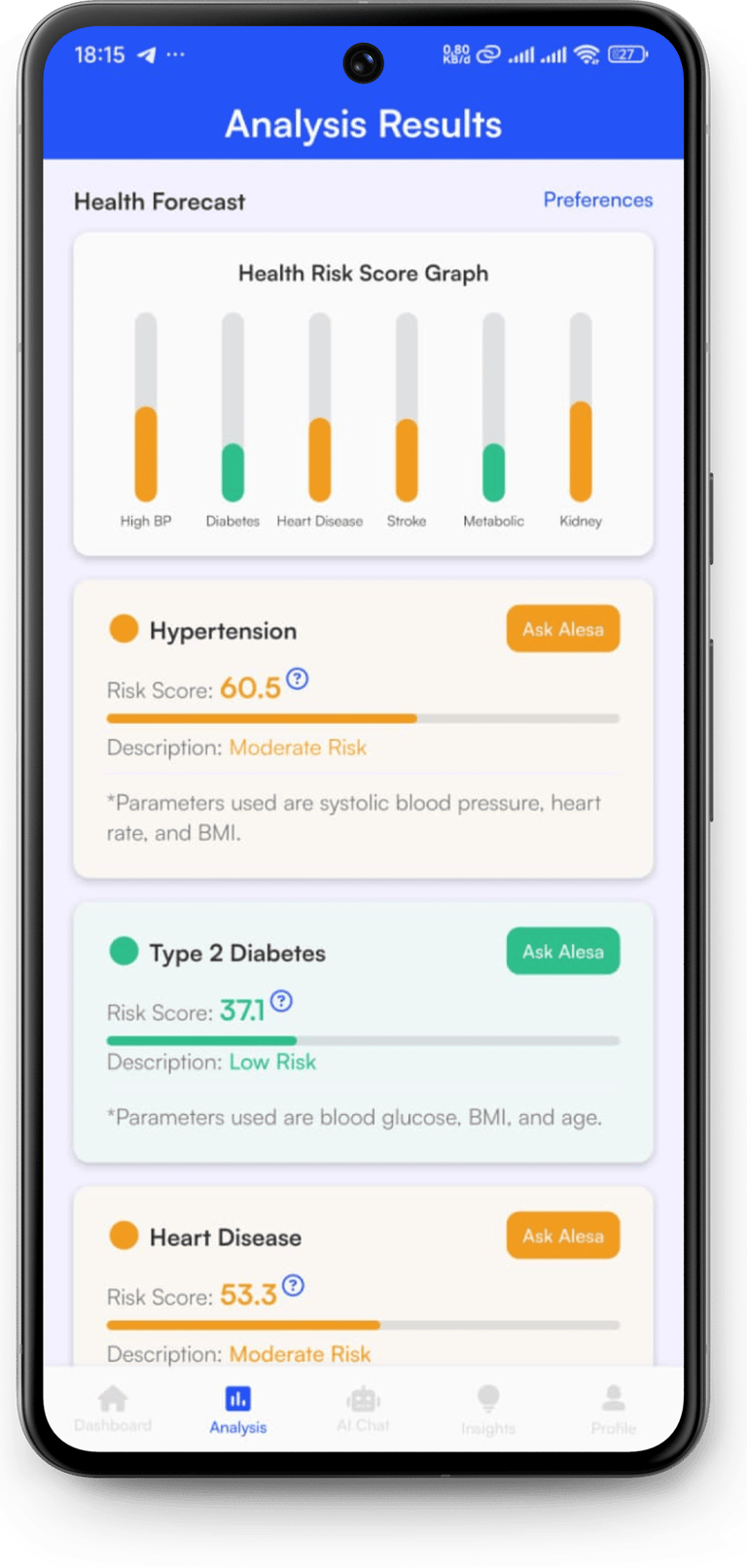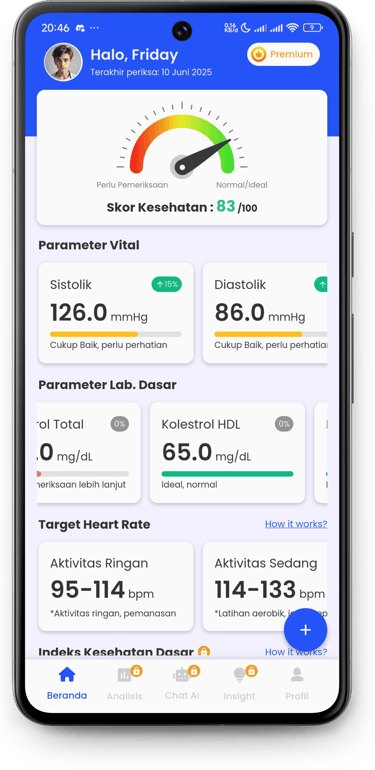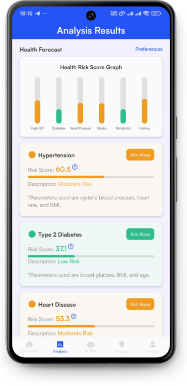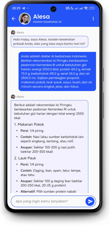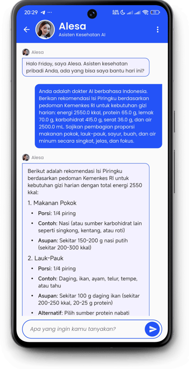Chat with smart AI that responds to symptoms and provides health tips based on your vital data—fast, accurate, and ready 24/7 in your hand.