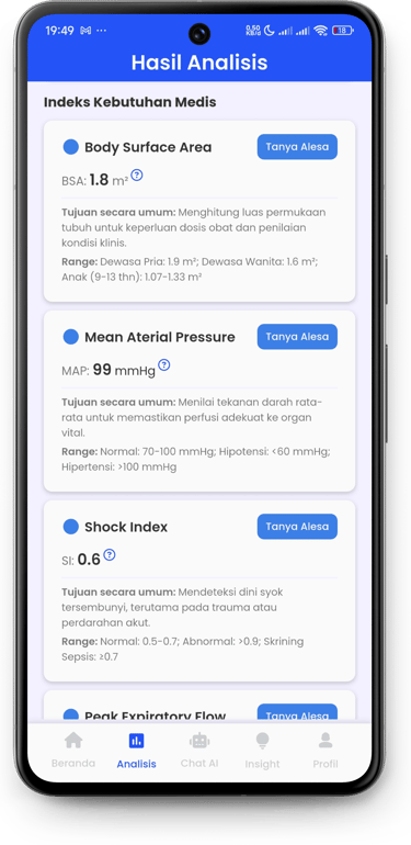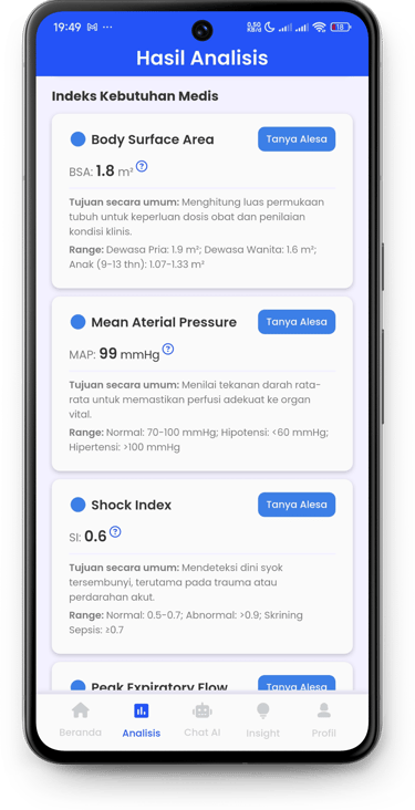 Monitor your TG/HDL ratio, body surface area, MAP (Mean Arterial Pressure), shock index, and peak expiratory flow for accurate daily health insights.