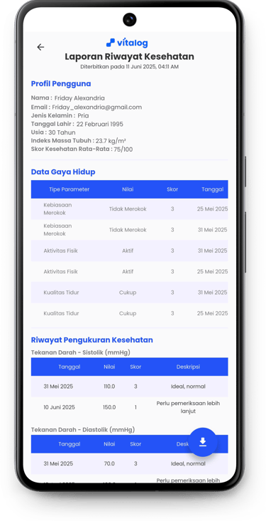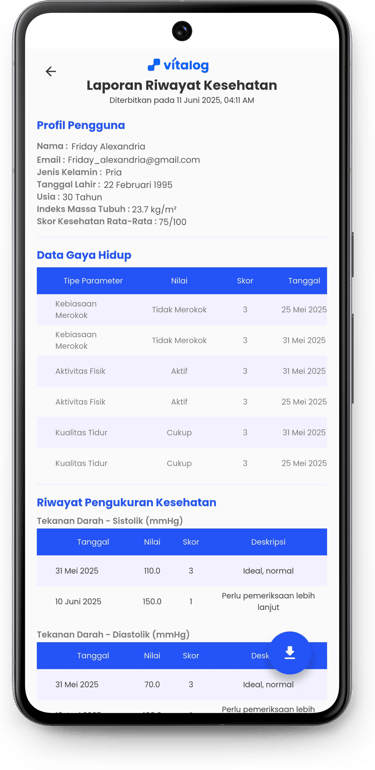 Using Vitalog helps you monitor your health in a more regular and structured manner. You can effectively track your health progress and gain valuable insights, empowering you to make better decisions for your overall well-being.
