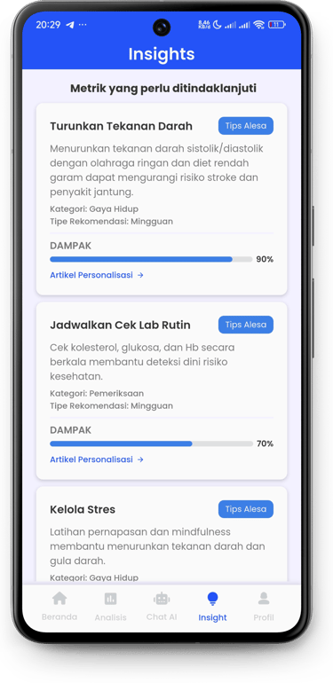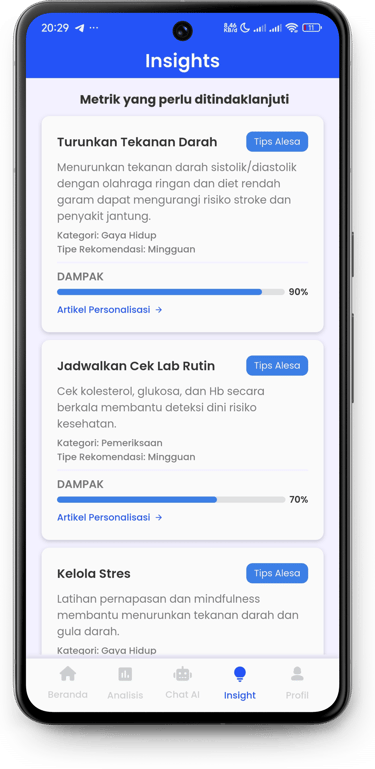 Receive personalized recommendations, such as low-sodium diets or exercise routines based on your vital data, guiding you toward a healthy and focused life.
