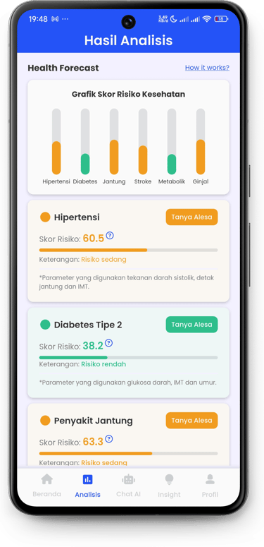 Chat AI cerdas jawab gejala & beri tips sehat berdasarkan data vitalmu, cepat, akurat, dan selalu siap 24/7 di genggaman.